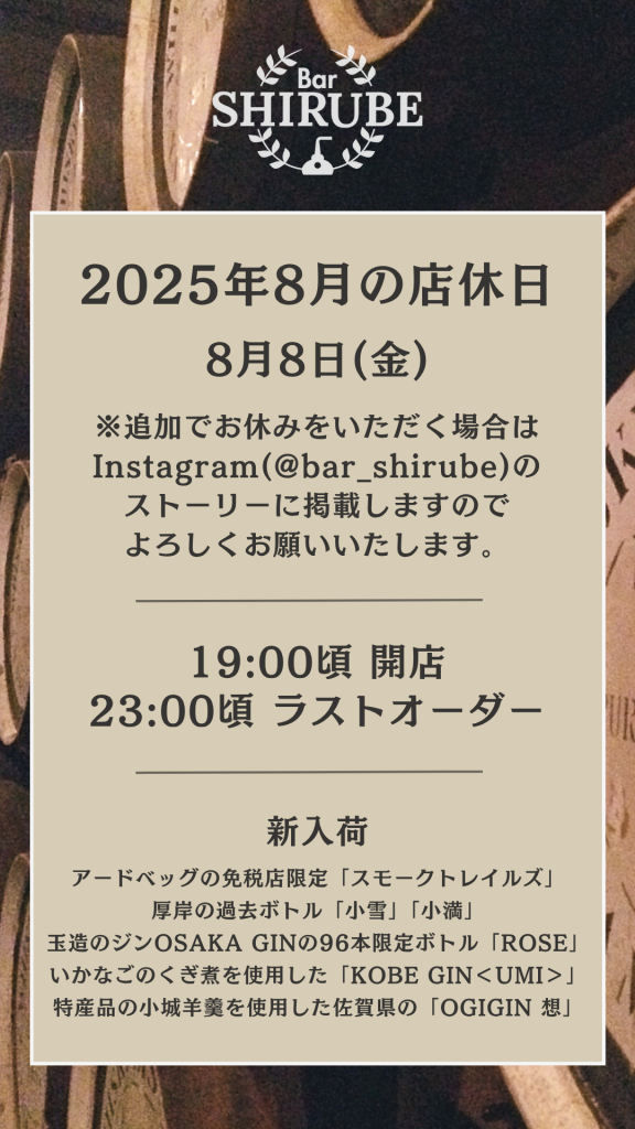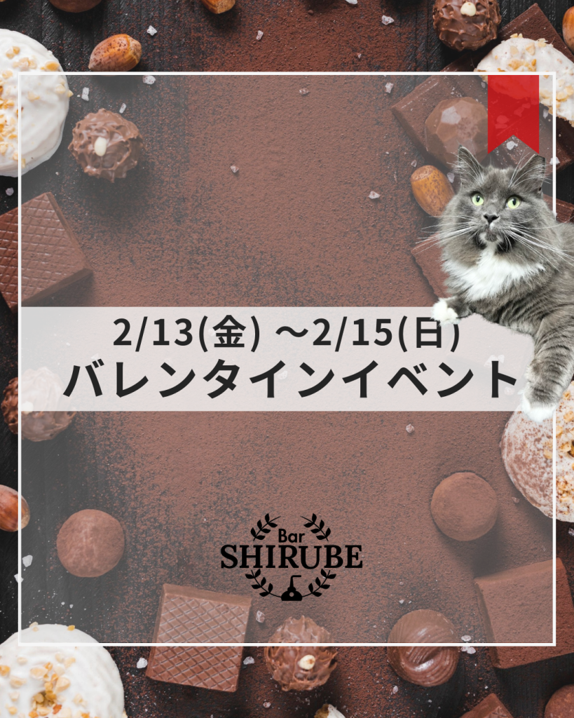 いつもお世話になっております、Bar SHIRUBEです! 2月13日(金曜日)〜2月15日(日曜日)は、バレンタインイベントを行います️。 チョコレートやチョコレートお菓子を無料サービス! ウイスキーとの定番の組み合わせをお楽しみいただけたら幸いで... -